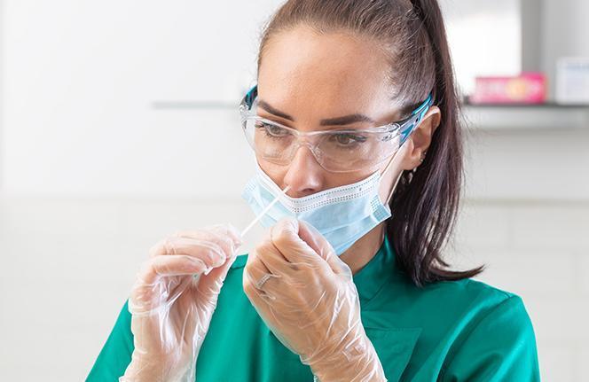 Molecular tests are often called PCR tests, short for a polymerase chain reaction, the lab technique used to detect the virus's genetic material. In most cases, a health care provider will collect nasopharyngeal/oropharyngeal secretions from your nose or throat using a specialized swab. (Some molecular tests now use saliva/nasal secretions, which people may find more comfortable.) Turnaround time varies from minutes to days or longer, depending on whether the sample is analyzed onsite or sent to an outside lab.